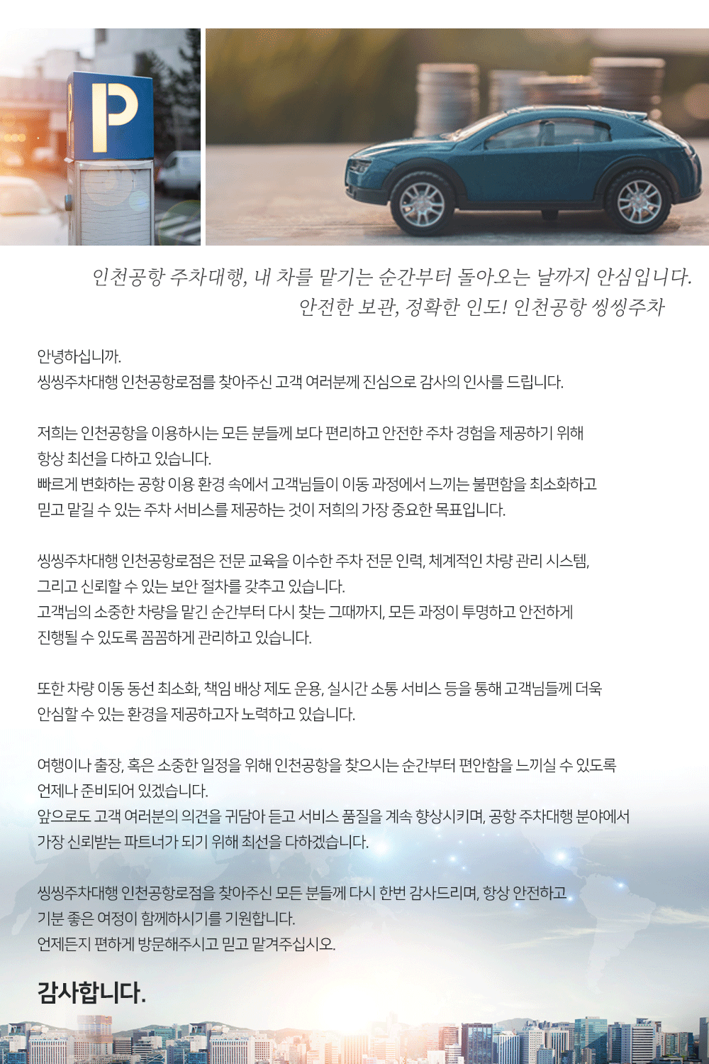 인천공항 주차대행ㅣ발렛파킹ㅣ씽씽주차